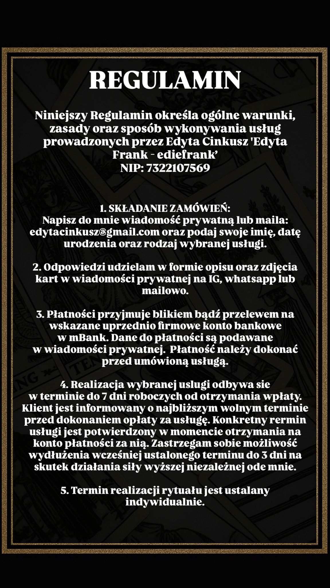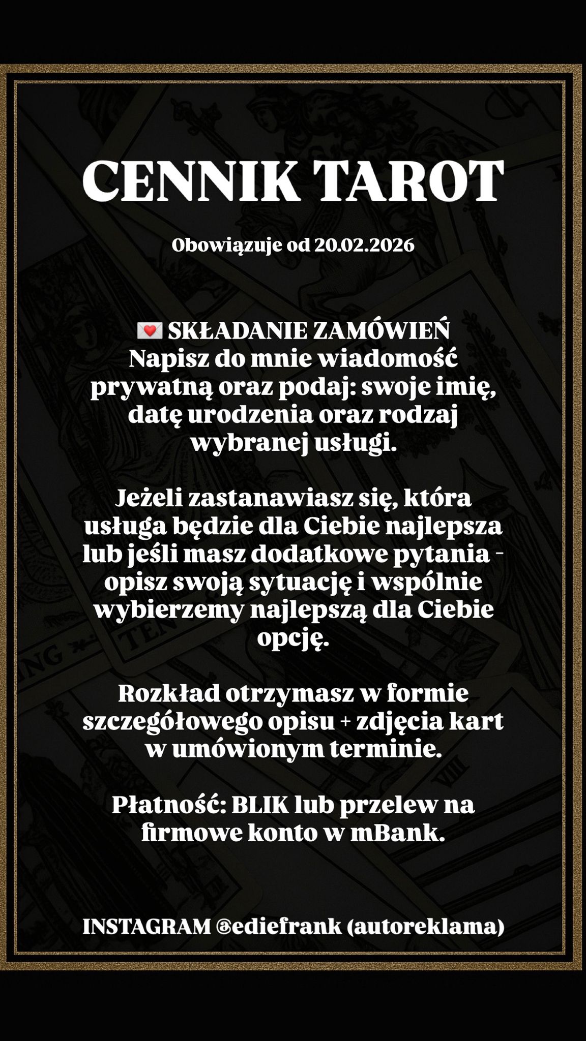 Napisz do mnie wiadomość oraz podaj: swoje imię, datę urodzenia oraz rodzaj wybranej usługi.